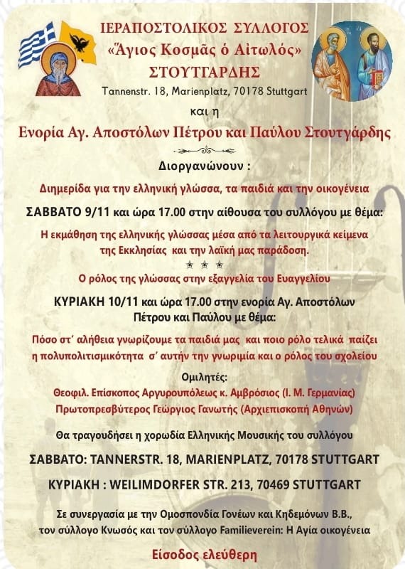 Διημερίδα για την ελληνική γλώσσα,τα παιδιά και την οικογένεια. Σε συνεργασία με τον Ιεραποστολικό Σύλλογο ΄΄ Aγιος Κοσμάς ο Αιτωλός΄΄